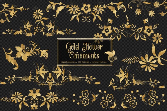 About gold line art flowers clipart graphic.